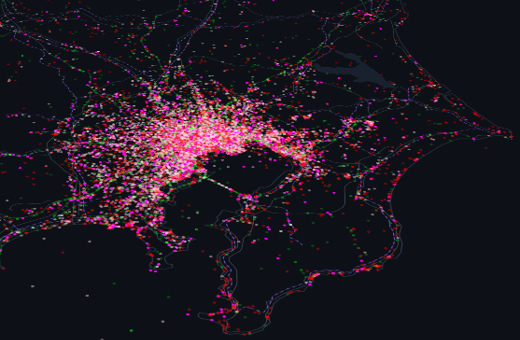- SafeFlowの携帯位置情報:ジオテクノロジオーズ社製の「Geo-People」を使用することで、高精度×常時取得の両立で、人々の移動を線で捉えることを可能にしています。